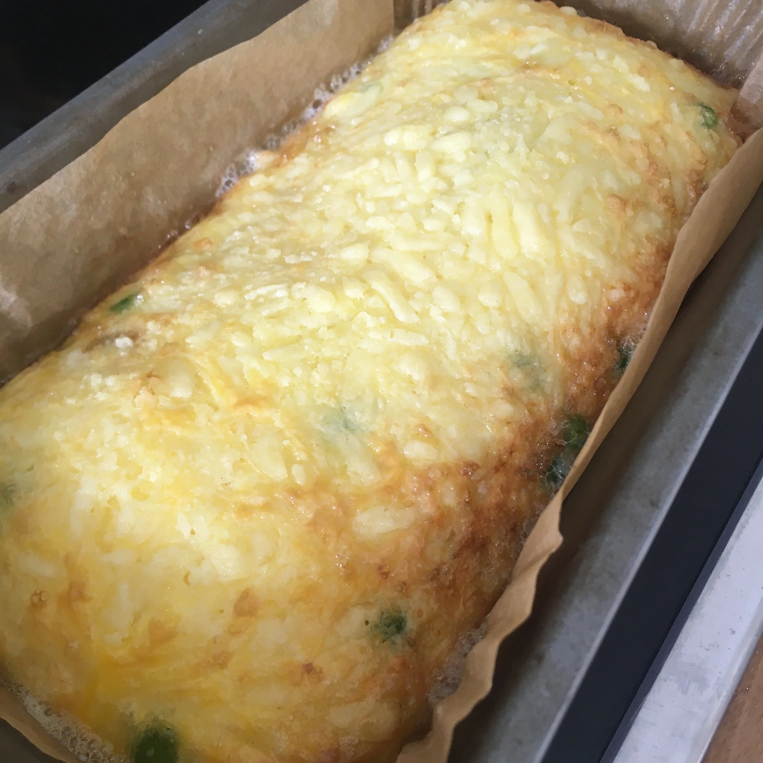 The frittata will be ready to eat whenever you are. You can tip it out the loaf tin and cut it into slices to serve with salad and new potatoes, or enjoy a slice with a cup of tea (just as S did).